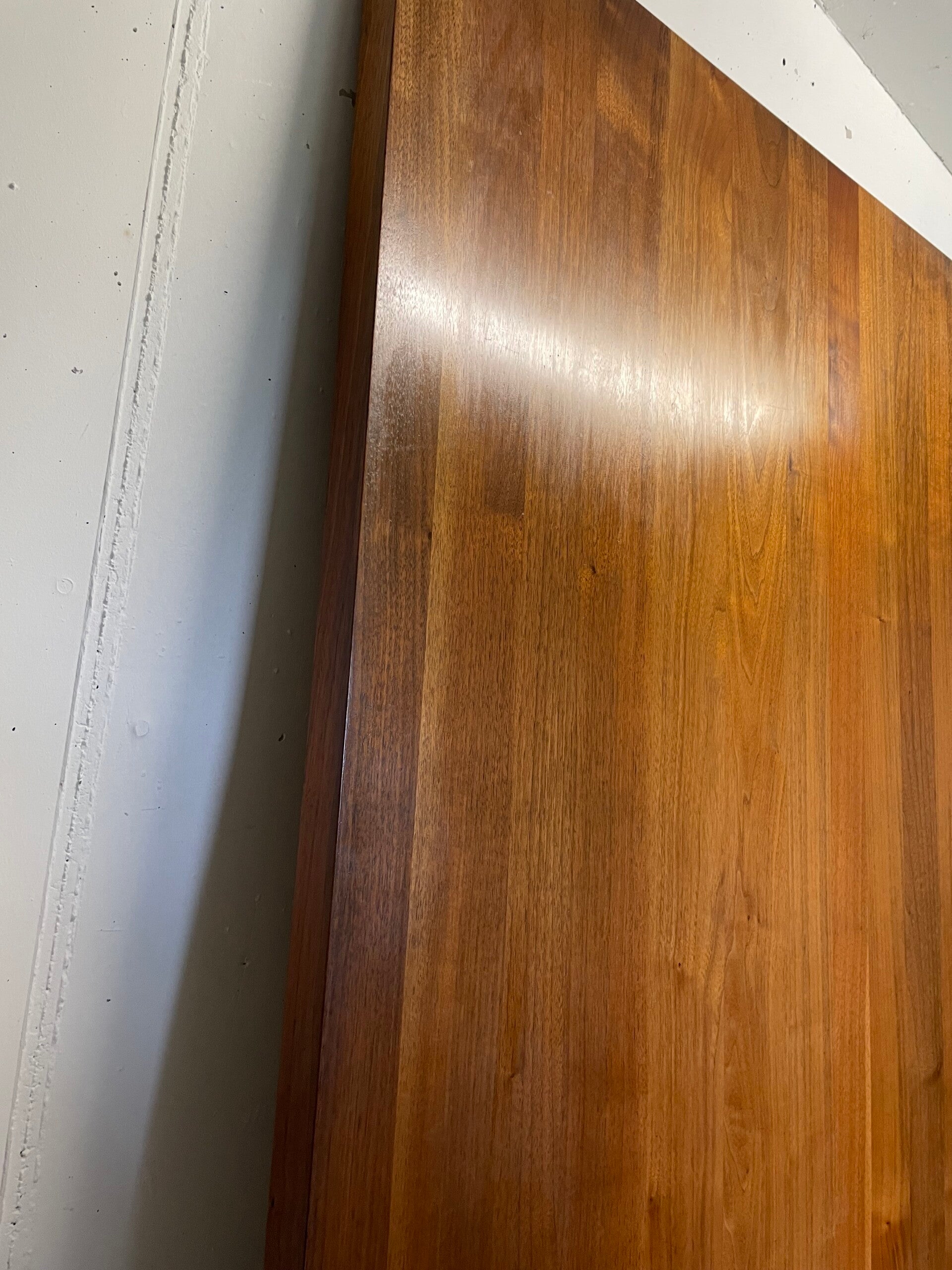 Massiver und sehr hochwertiger Esstisch aus Nussbaumholz, inkl. Verlängerungsplatte.